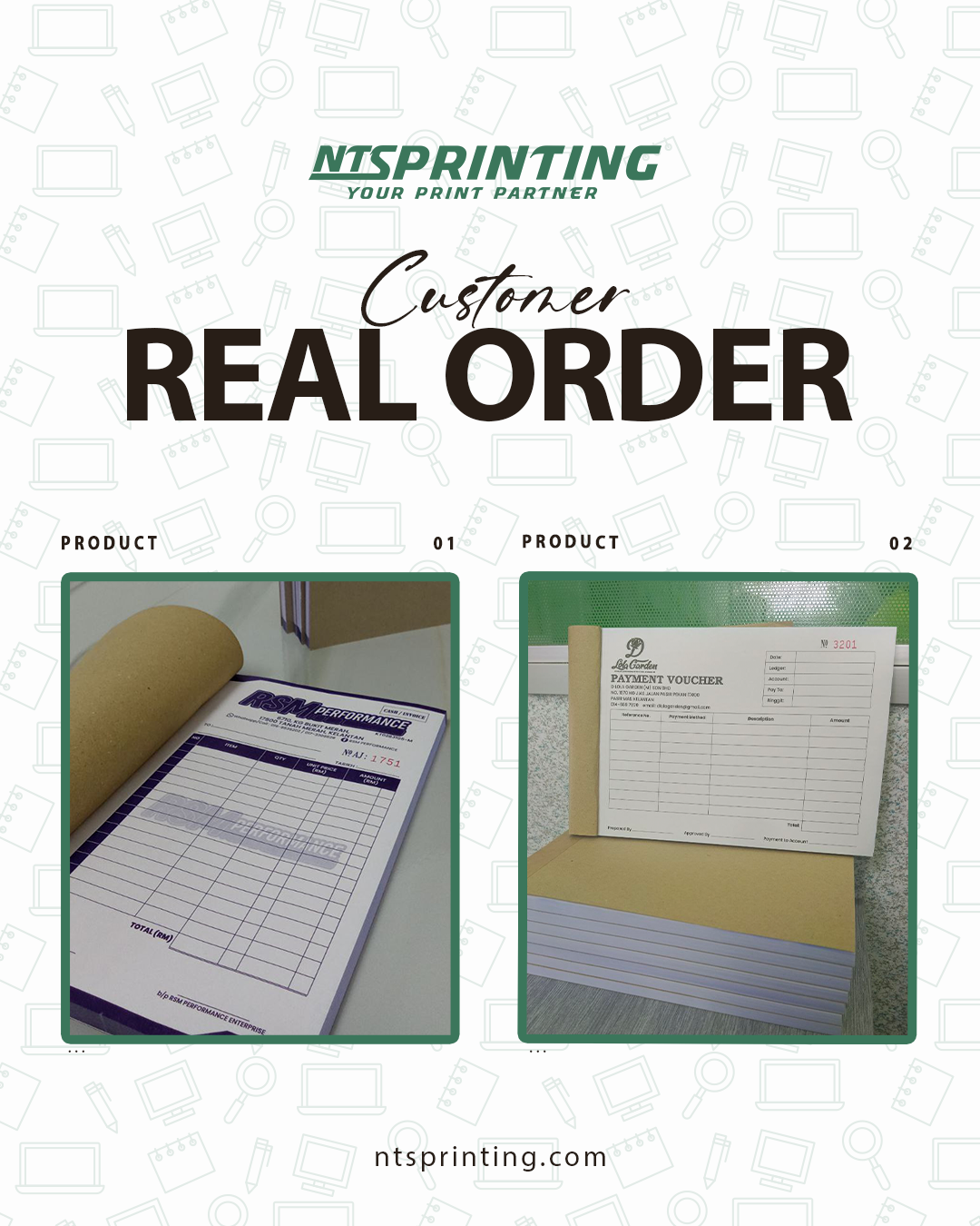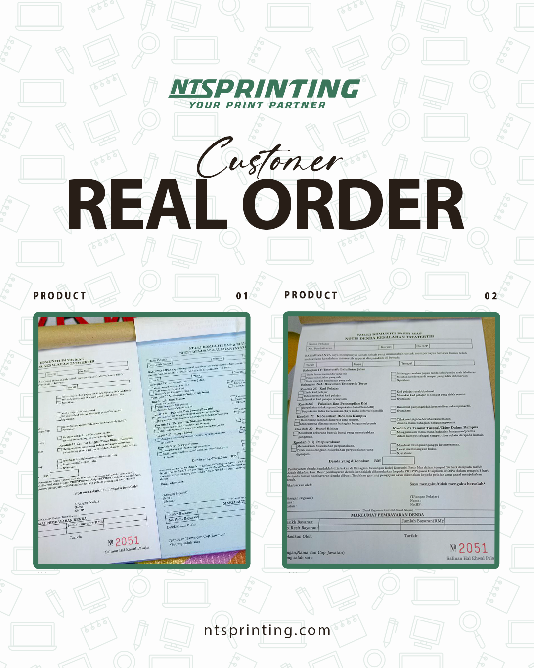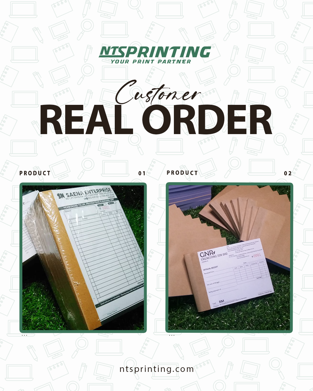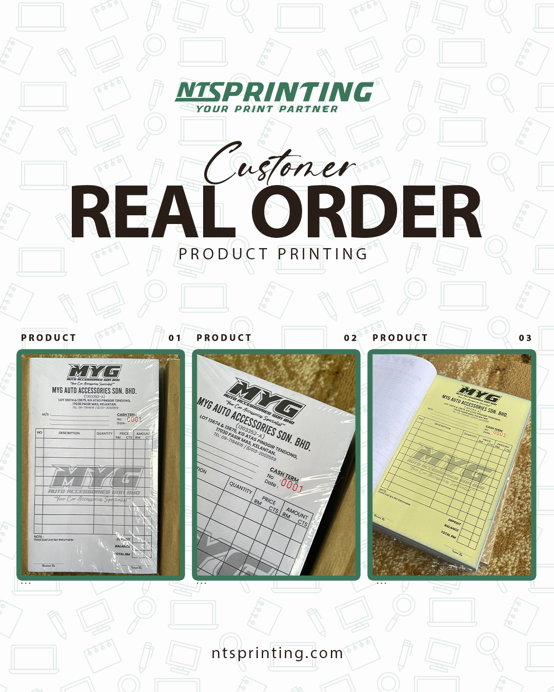 • Craft Paper (front cover - book only) • Craft Card (back cover) • Simili Paper 50gsm (Green / Blue /Yellow / Pink) • Bond Paper 50gsm (Green / Blue /Yellow / Pink) • NCR Paper 50gsm - Carbonize Paper (White / Green / Blue /Yellow / Pink) |